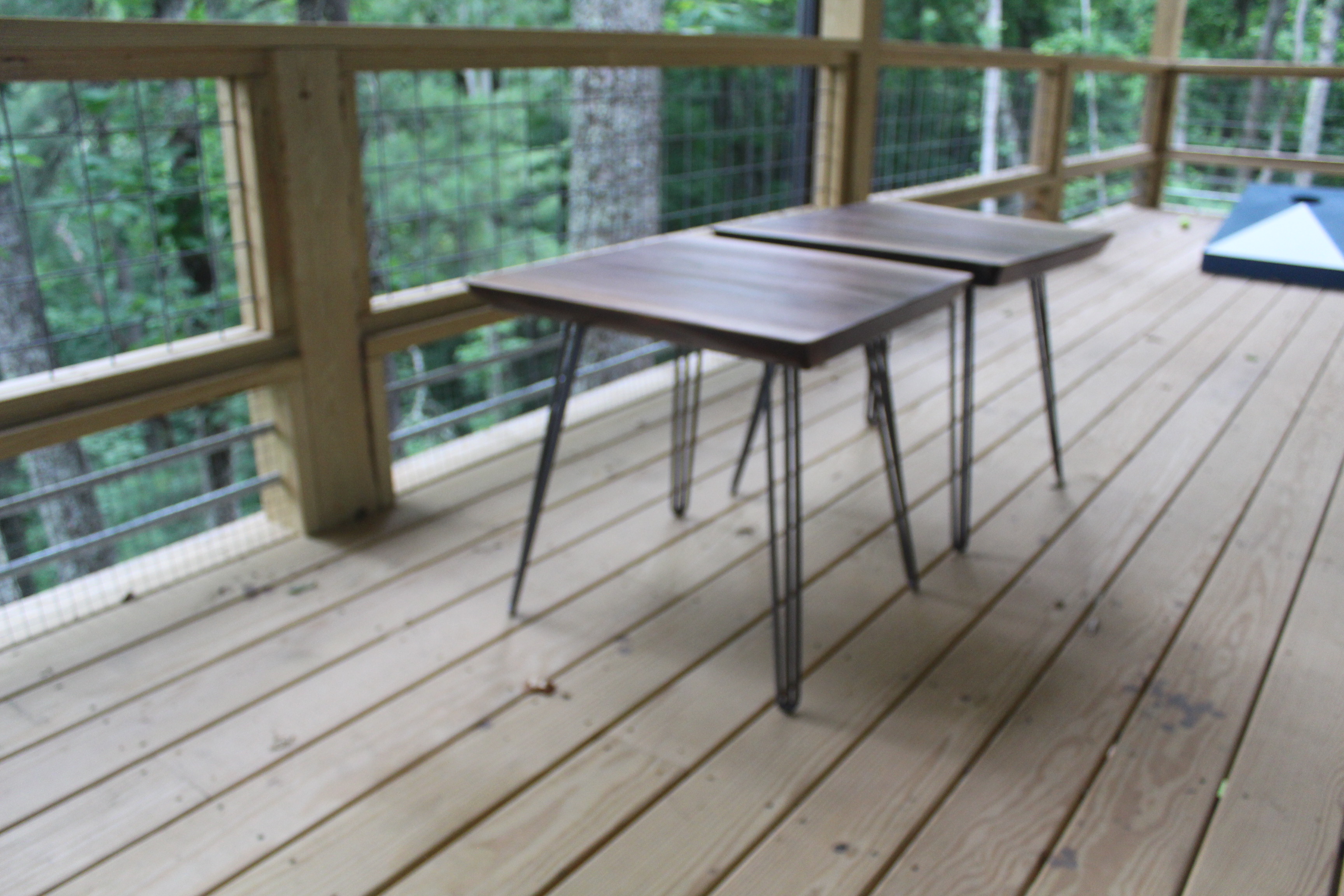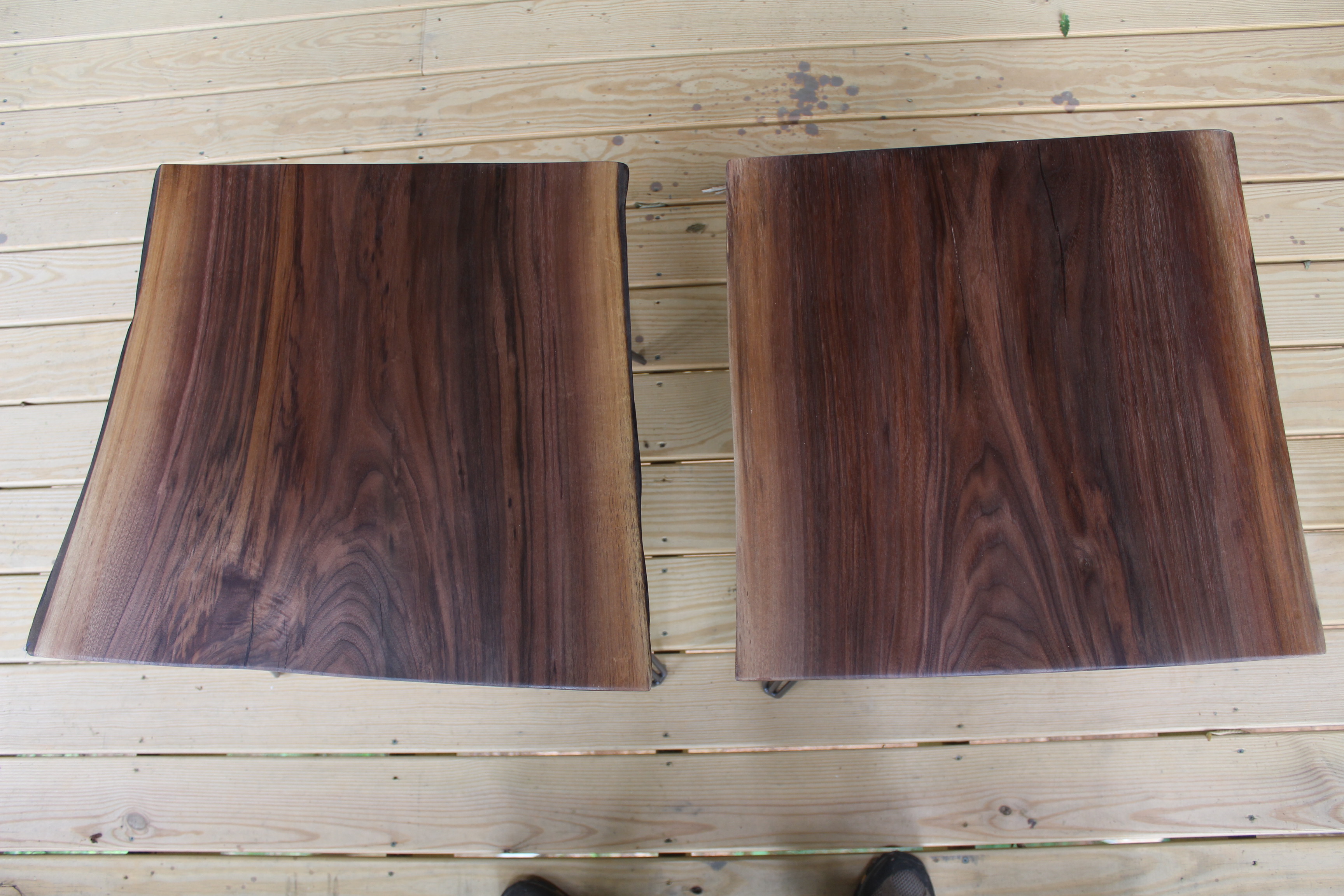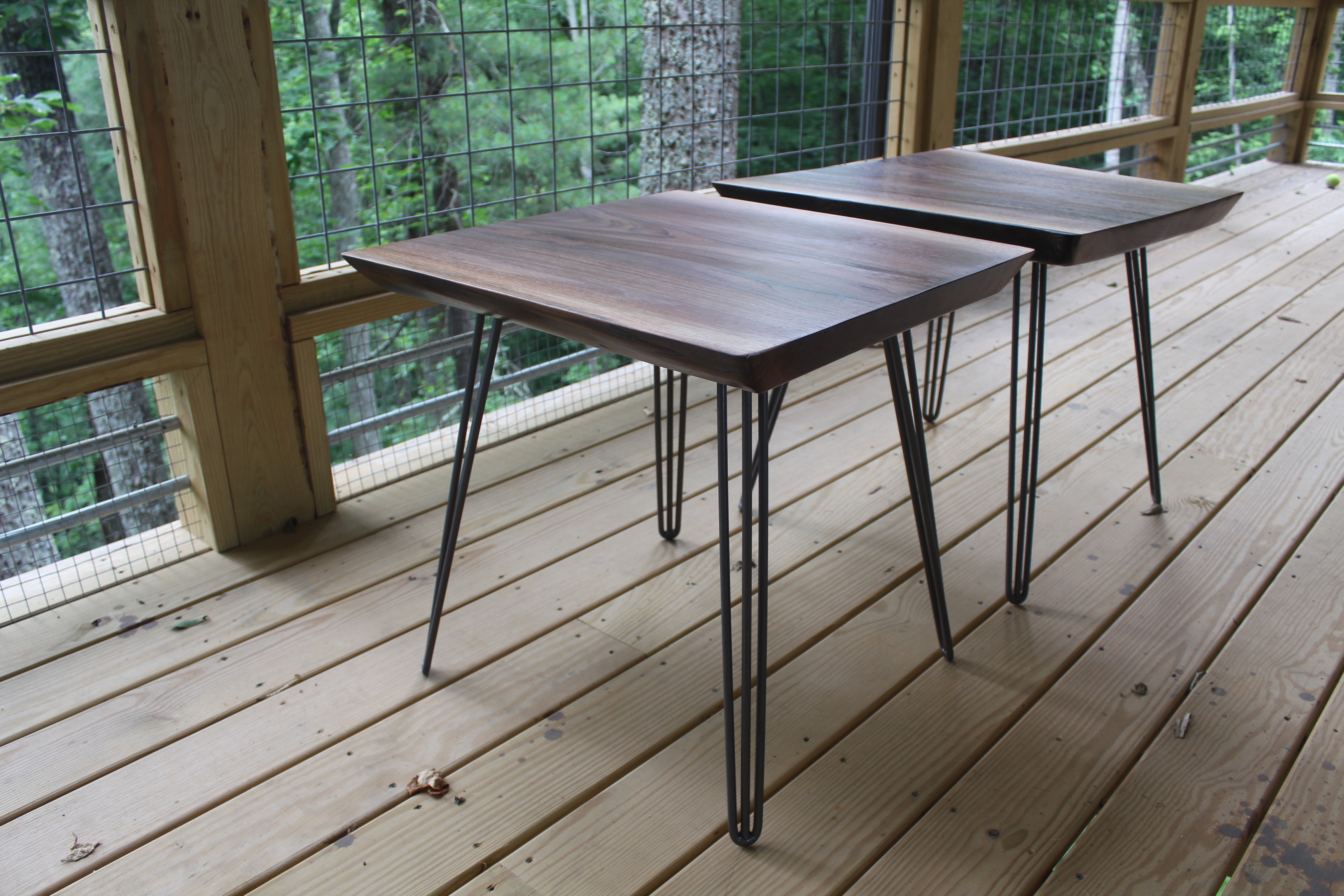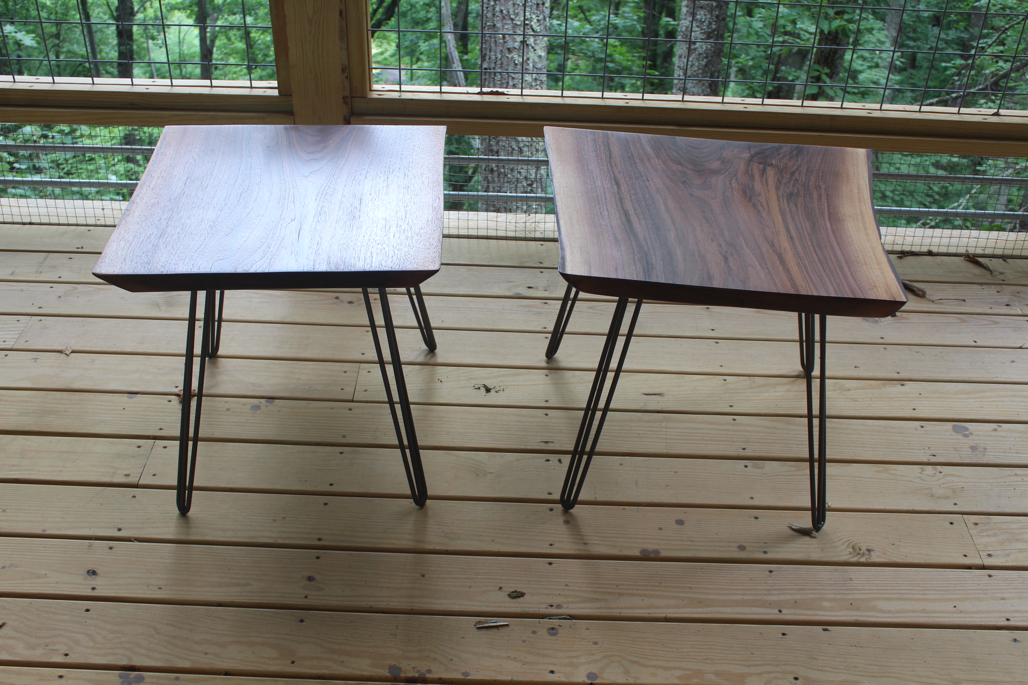 Live Edge Black Walnut Side Tables Theses tables stand apprx 22″ high and are made from 2″ thick black walnut. Finished with 3 coats of lacquer they sit on 3 rod hairpin legs. category Portfolio date May 20, 2017