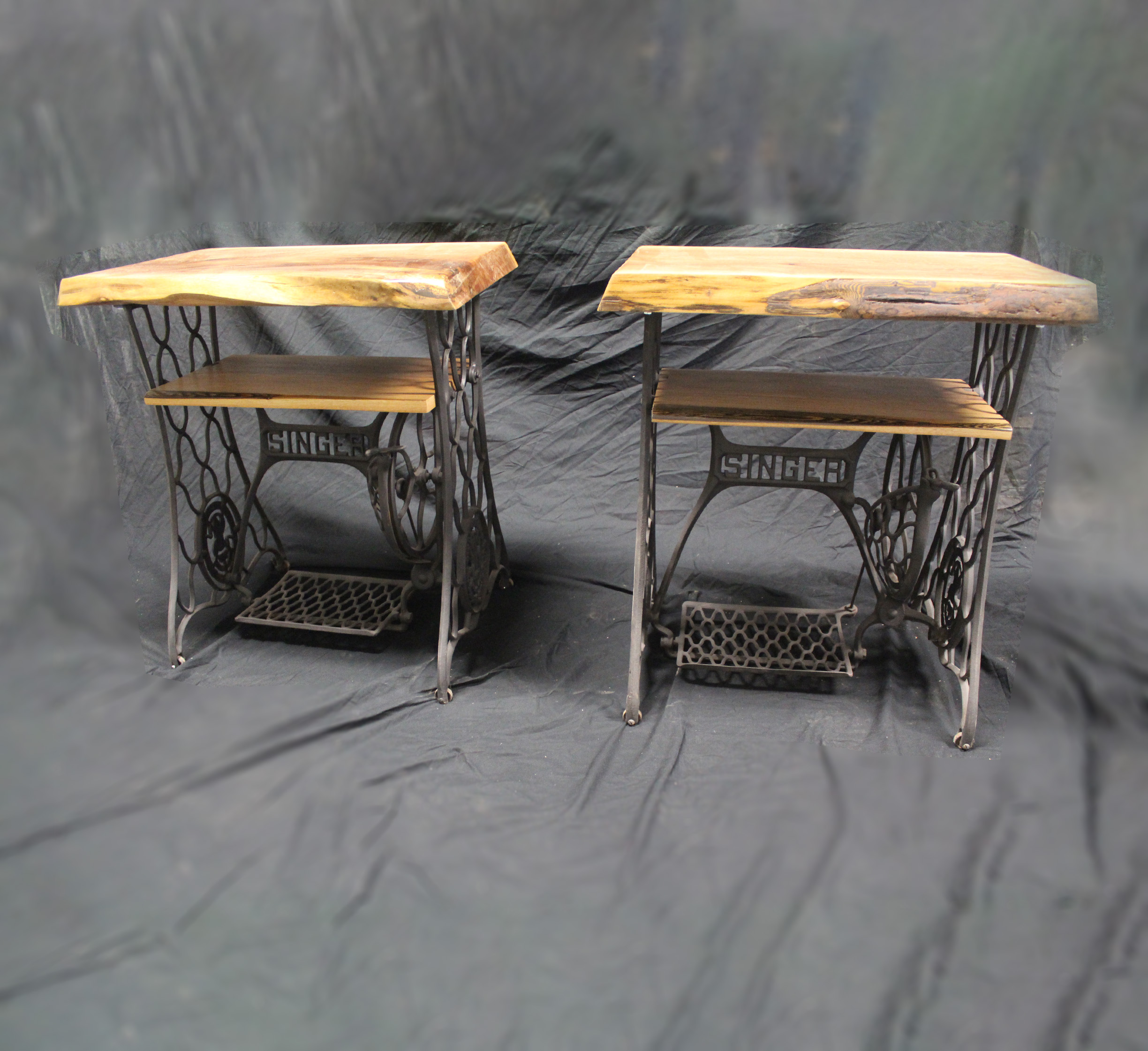 Two Black Walnut Bedside Tables on Singer Bases