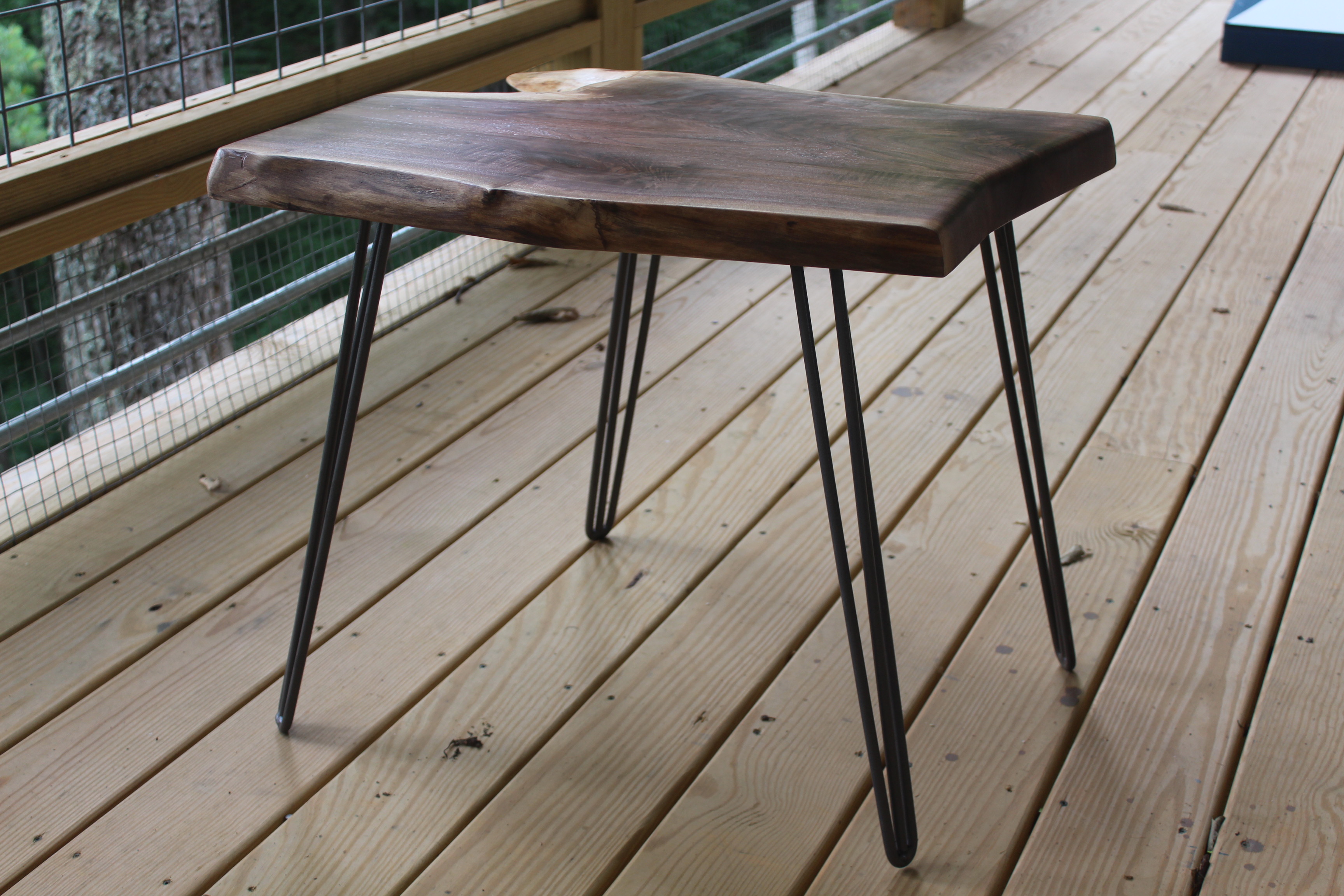 Black Walnut Side Table This side table was designed in cooperation with the owner. It’s made of two joined pieces of black walnut that sit atop 3 rod hairpin legs. category Portfolio date March 27, 2020